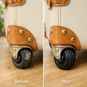 スーツケースのキャスター交換は、当店ブログでも「快適な旅を取り戻す修理」としてご紹介しています。