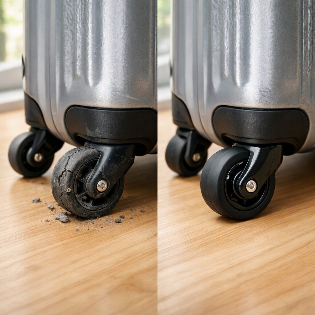 大阪梅田でスーツケースのキャスター交換をするなら即日仕上げ可能なミスタークイックマンへ